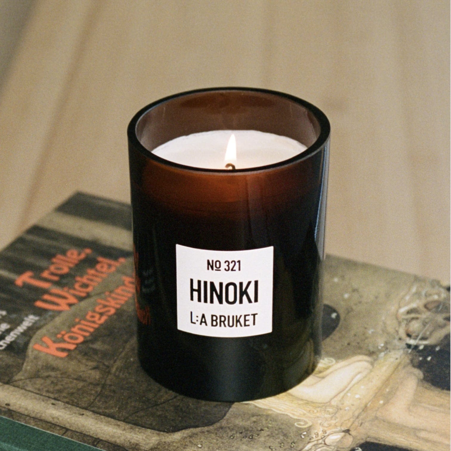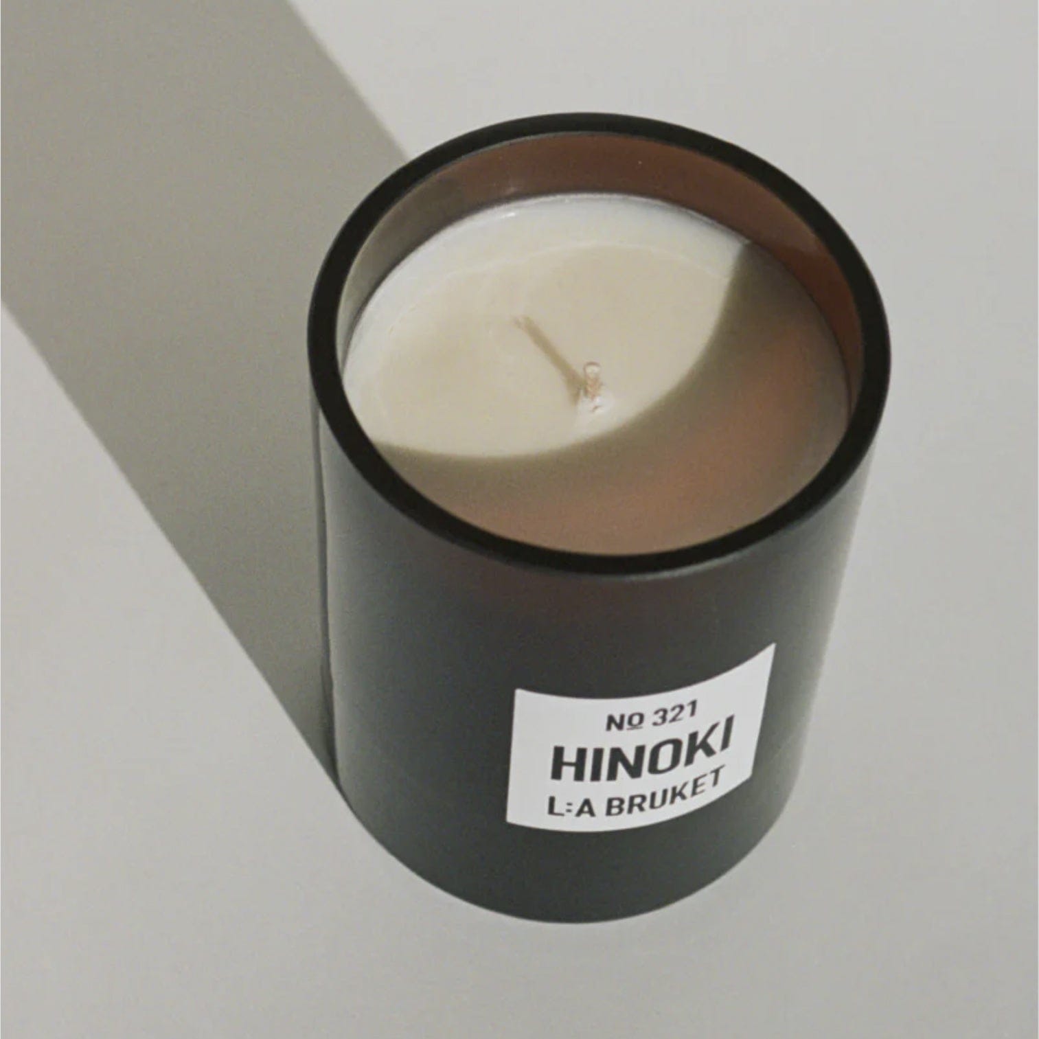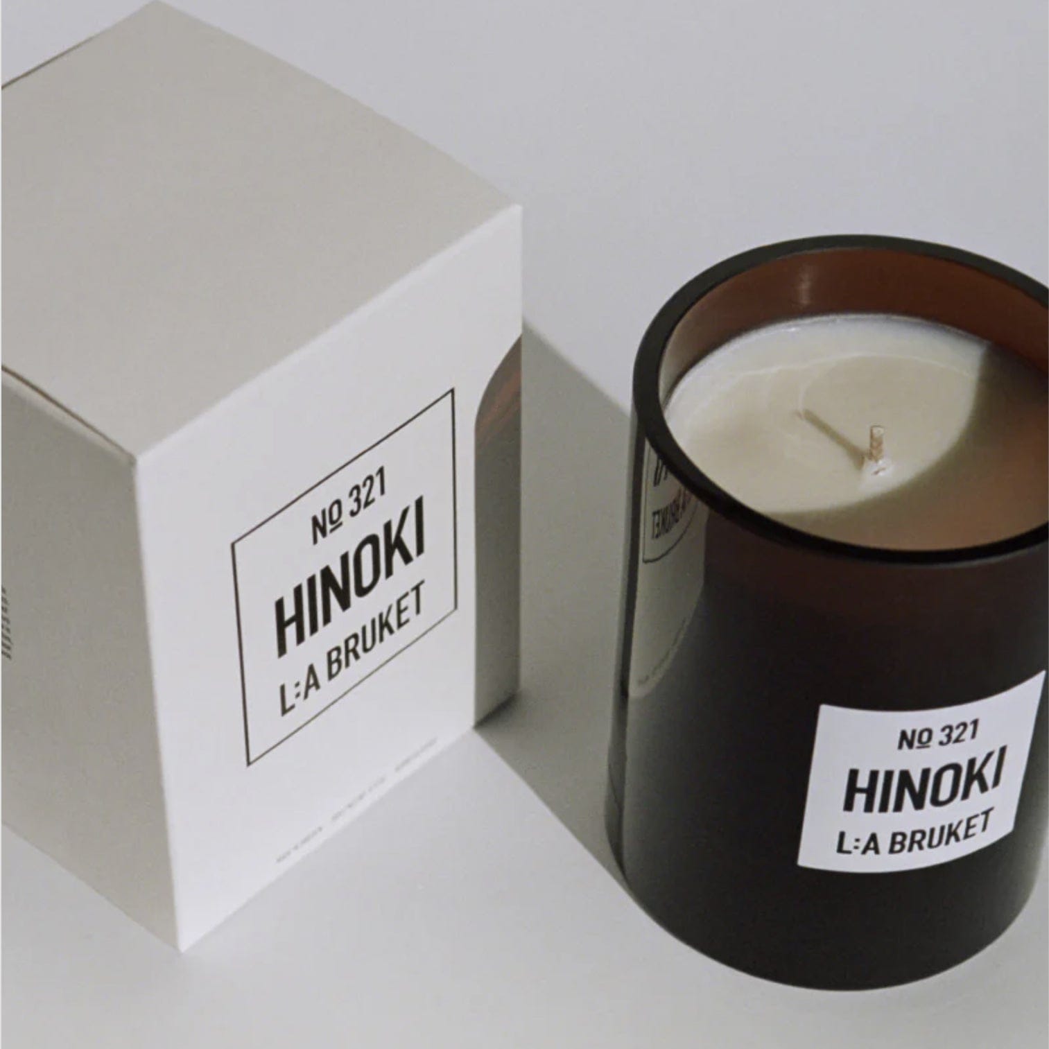 This L:A BRUKET Scented candle is crafted using Swedish plant-based wax with the soothing, woody and citrus aroma of Hinoki.