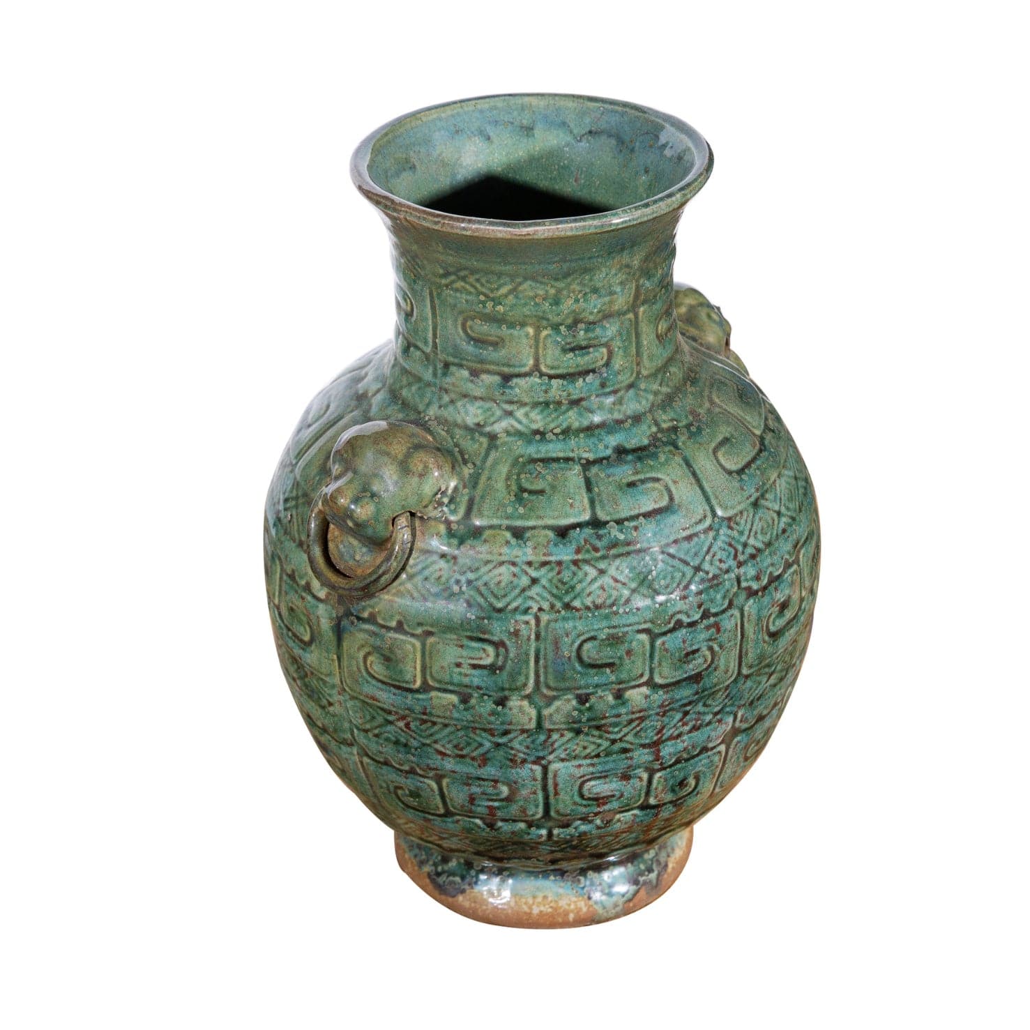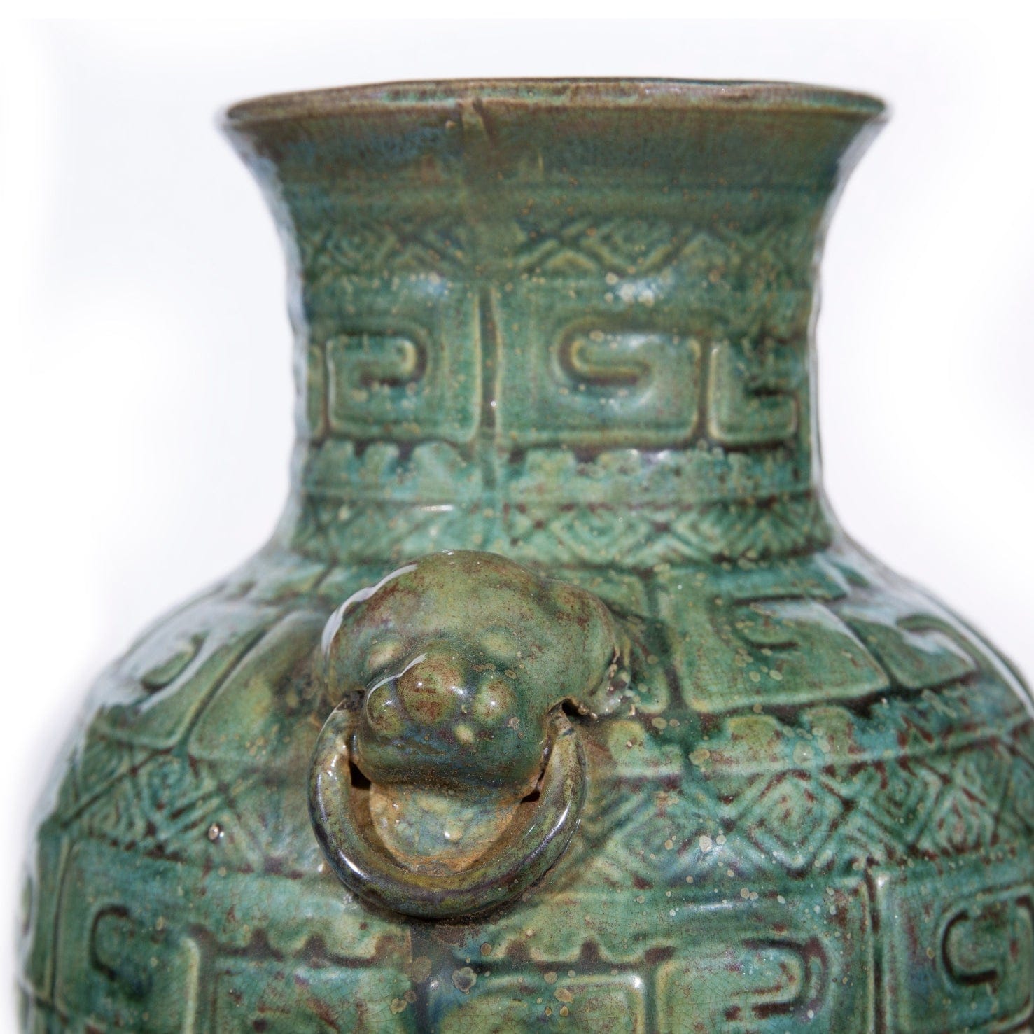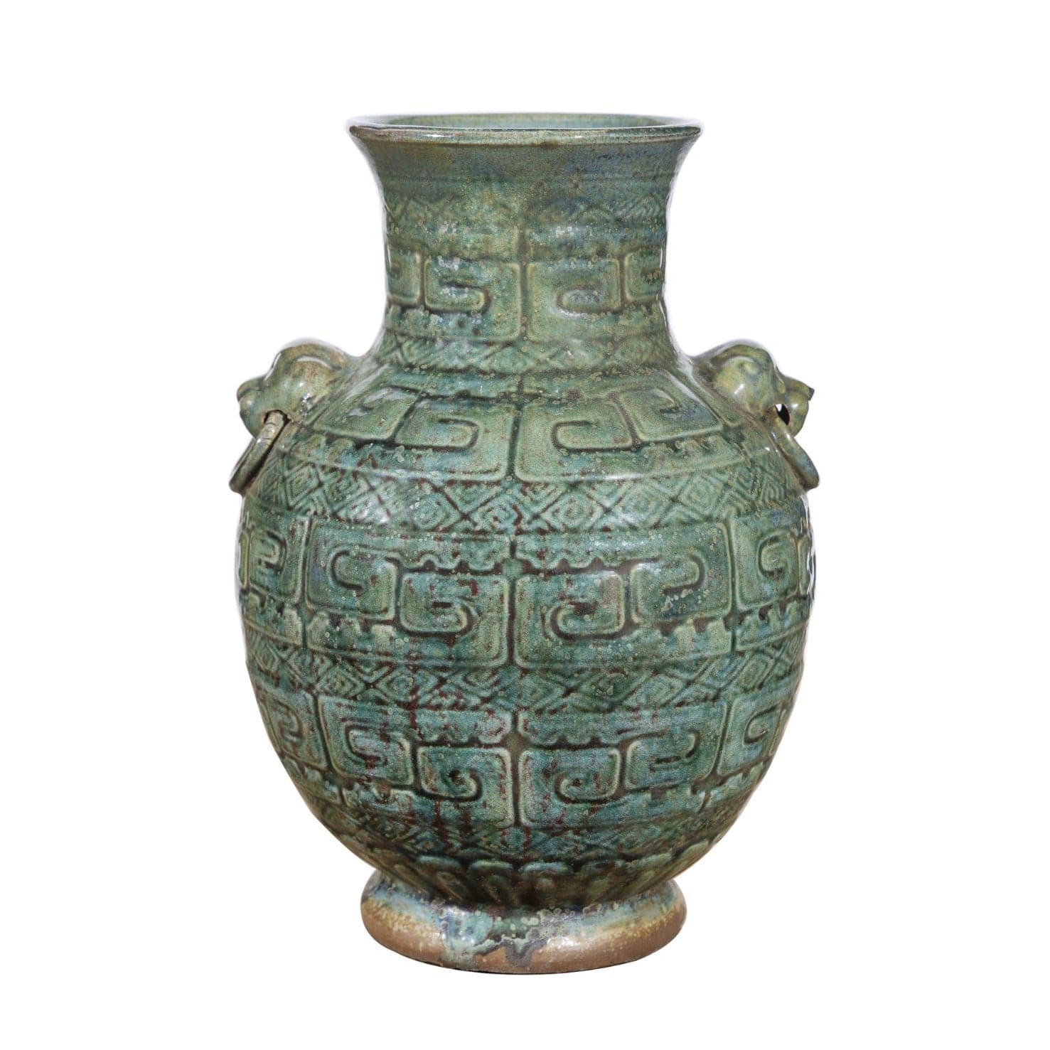 Green and turquoise hues paint this hand carved vase. Each piece was handcrafted by skill and joy. Imperfection is part of the characters. Minor variation of color/shape/size is normal for hand-made product.